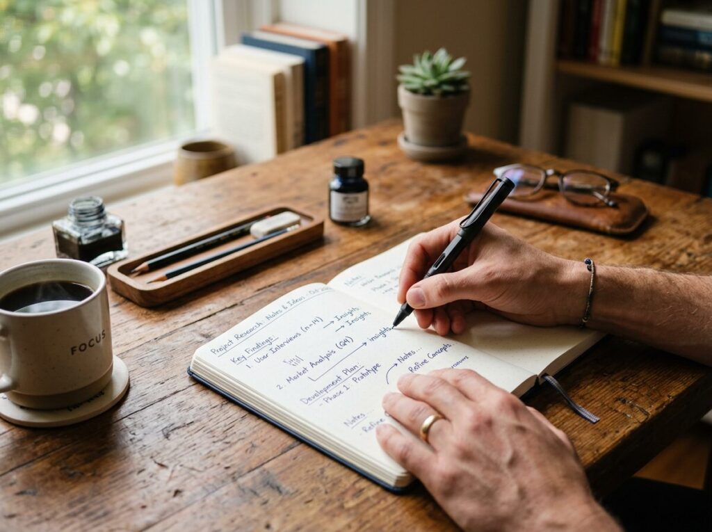 「なぜ転職したいのか」「自分が得意なことは何か」を紙に書き出しましょう。ここをサボると、面接で必ず詰まります。まずは過去の経験を振り返ることから。